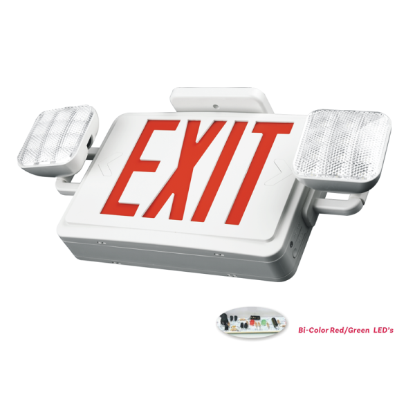 BI-COLOR LED Combo EMERGENCY EXIT SIGN with LED Heads